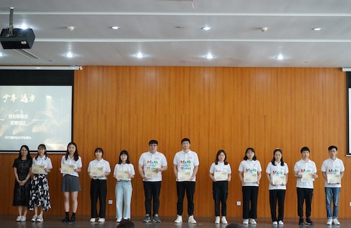 典礼伊始,全体起立奏唱国歌。随后,原理学院党委书记王淑君致辞,寄予同学们美好的祝愿,并给予同学们重要嘱托。接着,原理学院党委副书记应金飞为学院2021届校友联络员颁发聘书;毕业生代表数学173班沈浩发表毕业感言,表达了对学校、学院的感谢以及对未来的憧憬;毕业生代表数学172班傅烁渝、物理171班鲁侣峰、地信171王锣洋赠予学院“知行合一”、“格物穷理”、“经天纬地”三幅卷轴,感恩学院老师的培育,并由色漫 院长谢琪、物理学院副院长孙哲以及遥感地学系主任张登荣代表学院接受毕业生赠礼。在典礼上,班主任代表毛鸿老师表达了希望同学们能“做一个平凡的人”的美好祝福。紧接着,各毕业班代表为班主任、导师以及辅导员献花。其后,毕业生党员代表在台上庄重宣誓,表达了不忘初心,牢记使命的精神。最后,物理171班邱凌、数学171班徐雨帆、数学172班朱戈三位同学倾情献唱《特别的爱给特别的你》和《光阴里的故事》。在久久回荡的歌声中,2021届毕业典礼圆满结束。