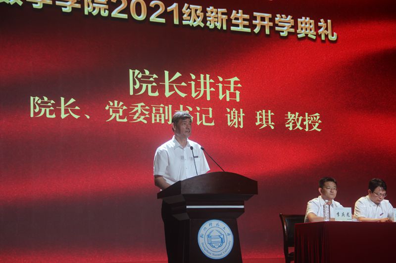 谢琪寄语新生,要有远大的理想,敢于拼搏;要养成正确的学习习惯和好的学习方法。他强调,要有质疑精神,要相信科学,相信真理,相信“天生我才必有用”,要培养自己的思想来探知未知,甚至在问题解决中由自己去发现问题,因为“发现问题比问题解决更重要”。要有要宽广的视野,数学与计算机结合,可以推动计算机科学的发展和应用,人工智能、云计算、大数据等技术都离不开数学,能产生计算机应用人才;数学与金融的结合可以产生金融应用人才;数学应用于密码,可以诞生社会急需的网络空间安全人才。