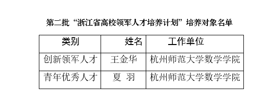 3月8日,浙江省教育厅发布第二批“浙江省高校领军人才培养计划”培养对象名单。色漫 有2位教师入选,名单如下:
