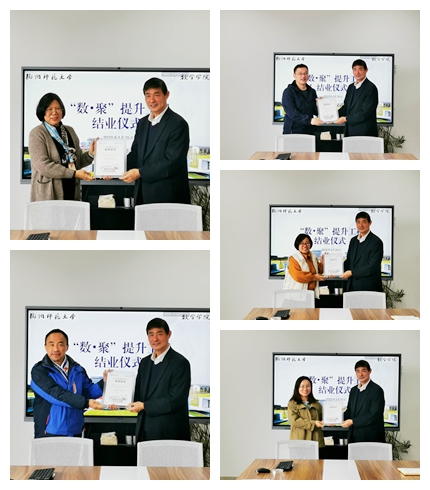 2022年2-3月,学院首届“数•聚”提升工程圆满结业。院长谢琪、党委书记徐金芳出席结业仪式并为优秀学员颁发证书。