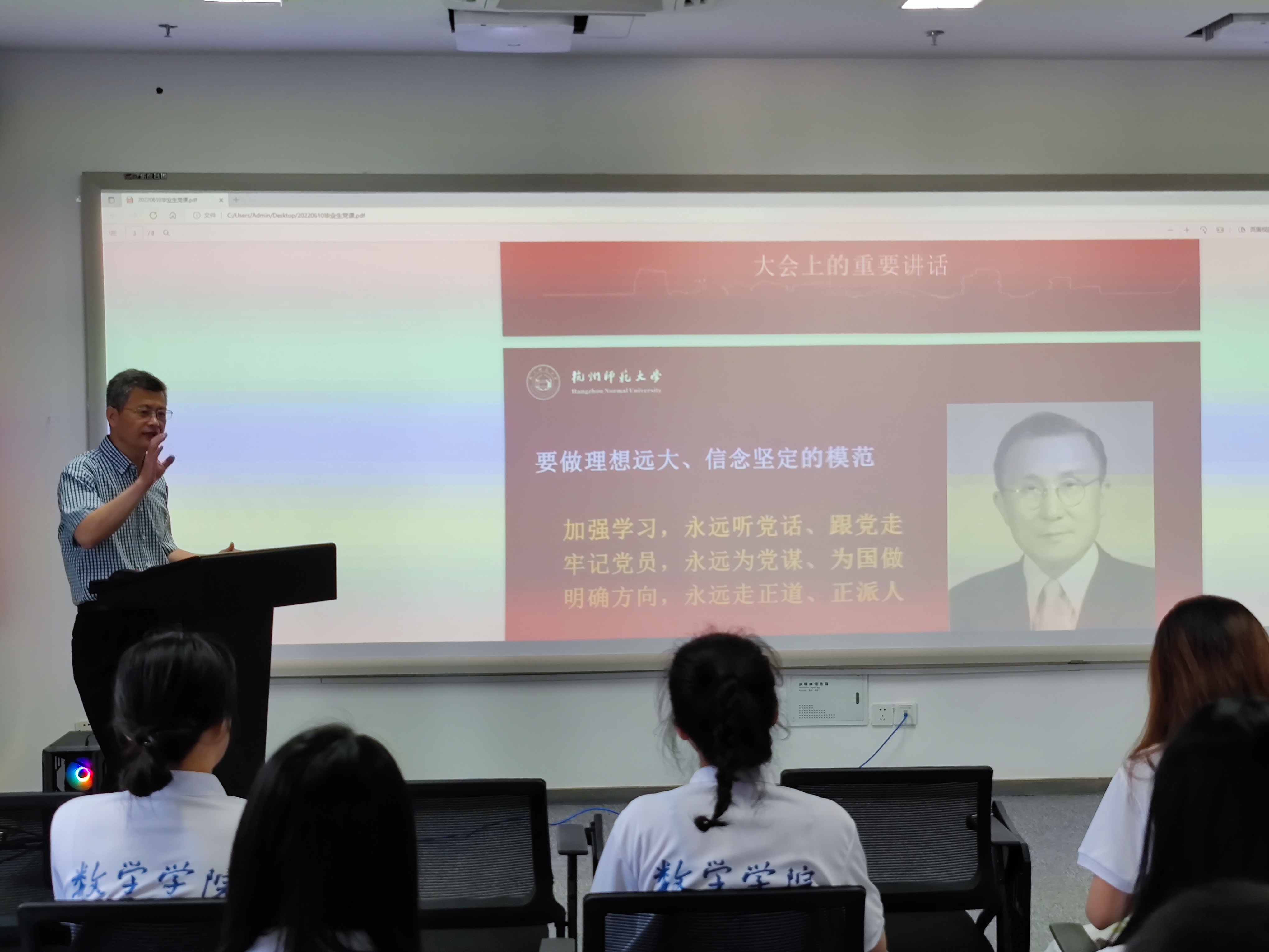 学院党委书记徐金芳向毕业生党员顺利毕业表示祝贺,也对全体毕业生党员在大学期间积极发挥先锋模范作用给予了肯定。他勉励毕业生党员们能够牢记初心使命,在工作岗位上也要做理想远大、信念坚定的模范;刻苦学习、锐意创新的模范;敢于斗争、善于斗争的模范;艰苦奋斗、无私奉献的模范;崇德向善、严守纪律的模范,继续在新的人生阶段抒写青春华章。