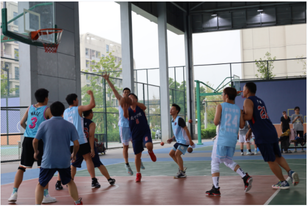 教工男篮在风雨篮球场和学院男子篮球队开展了一场别开生面的篮球友谊赛,学院数十余名篮球爱好者前往现场观看比赛。