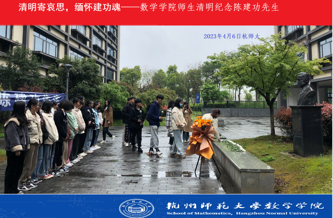 在此清明来临之际,色漫 师生冒着绵绵细雨,手握鲜花,聚集一堂深切缅怀陈建功先生,寄托无尽哀思。首先参与仪式的全体师生进行了一分钟默哀,随即学生代表向陈建功先生塑像贡献敬献花篮,以表达我们的无尽思念和崇高敬意。