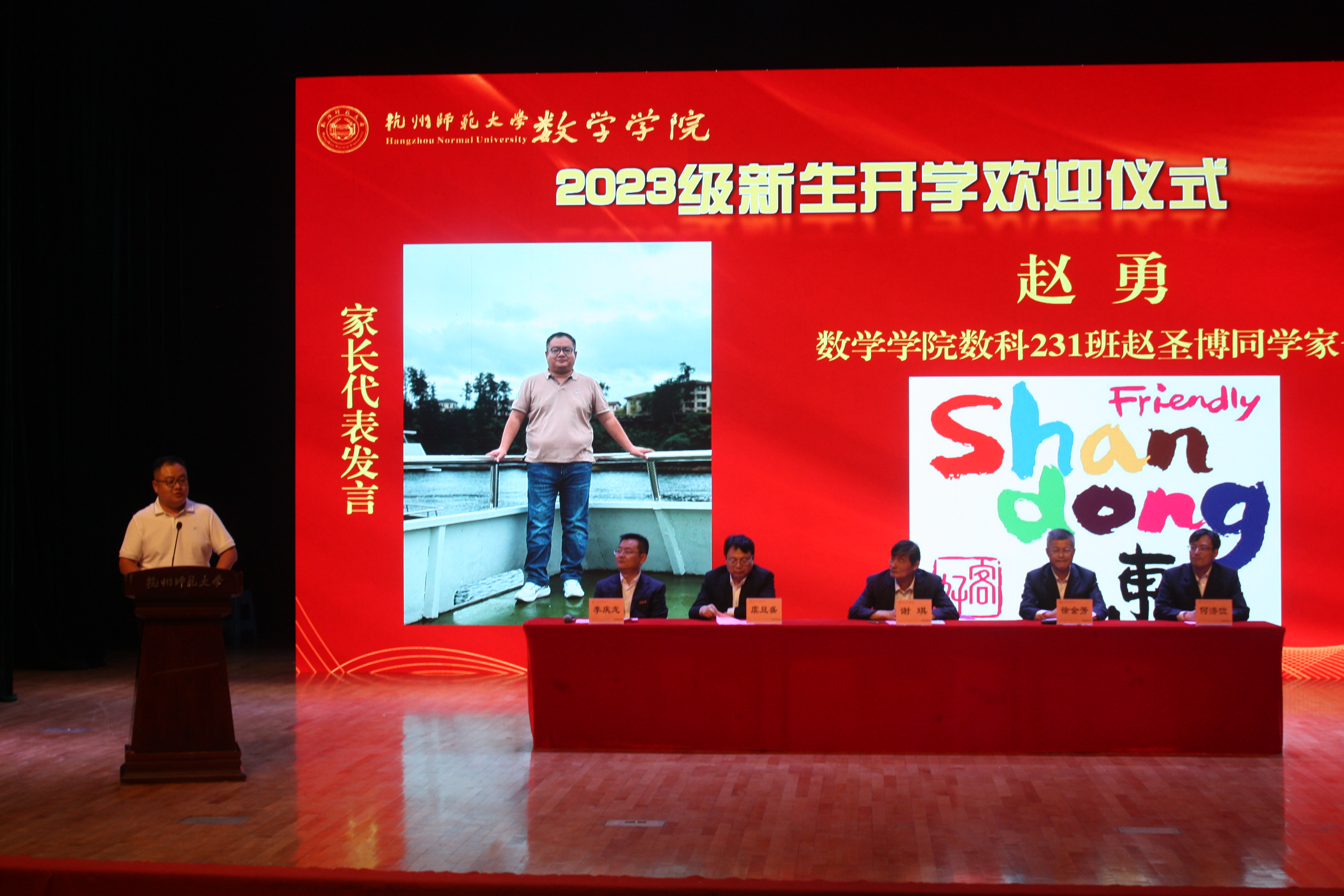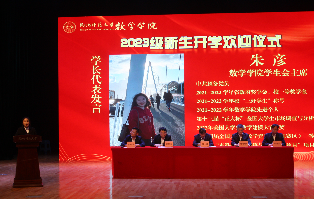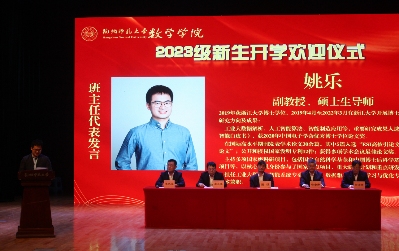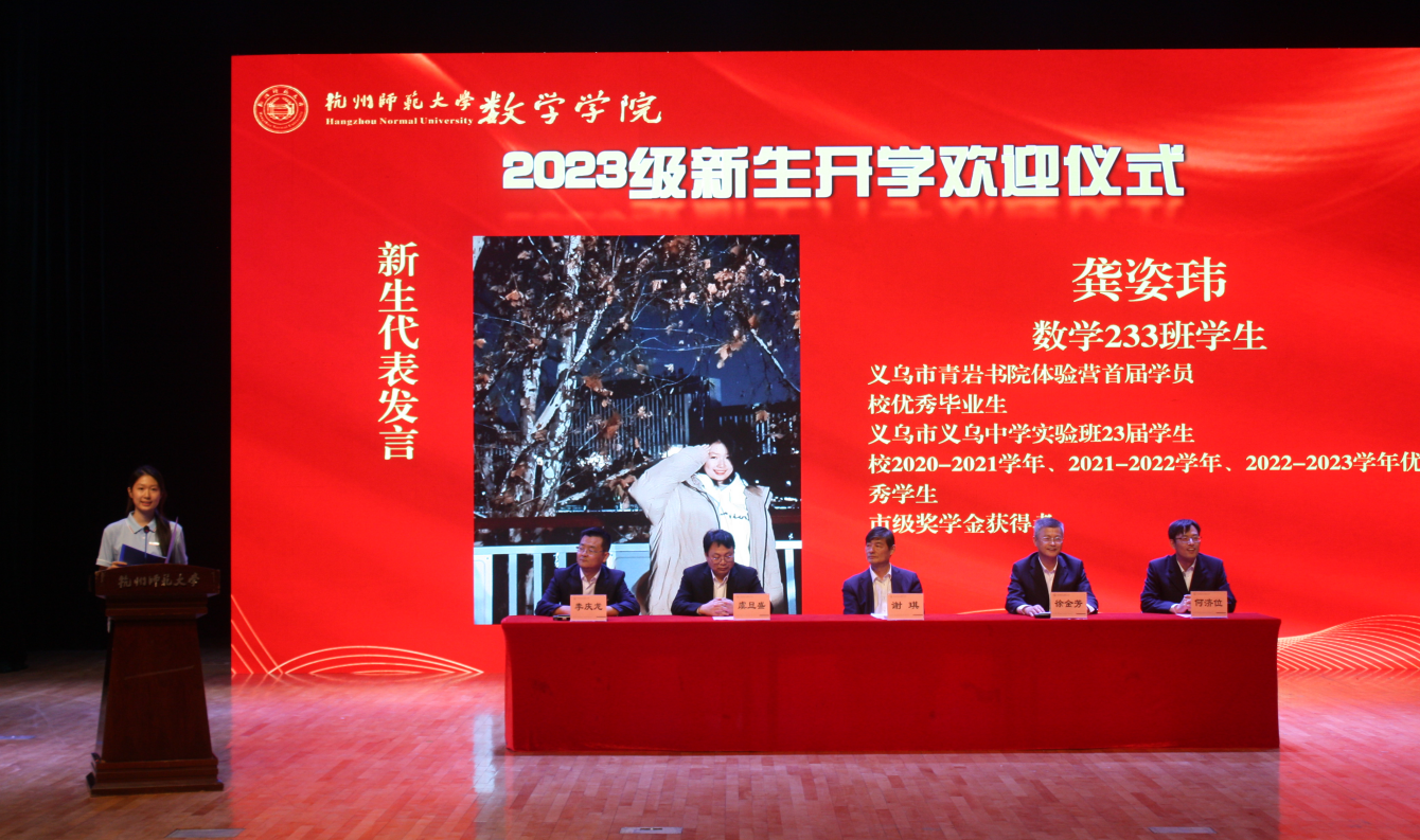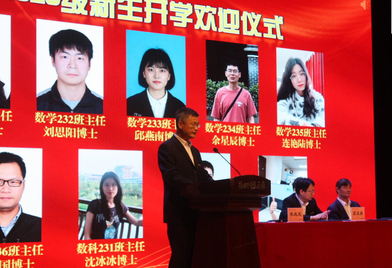 欢迎仪式上,院长谢琪教授热情洋溢地发表了欢迎致辞,向2023级新同学表示热烈的欢迎,向呵护养育、培养教育新同学们的父母和老师表示衷心的感谢。他说,恰逢杭州亚运会举办之际,色漫 也作为亚运场馆见证了亚运金牌的诞生,在如此风景秀丽的城市读书、生活,是非常幸福的事情。色漫 在百十年来,涌现出著名数学家、教育家陈建功先生等各领域成绩斐然的杰出校友,培养了国家千人、长江学者、国家杰青等知名学者和一大批中学名师和名校长。一代又一代杭师大数学人弘文励教、青蓝相继,知数明德、弦歌不辍。院长谢琪教授勉励大家发扬科学精神、肩负起报效国家的责任,发现数学之美,不负韶华,成为一名优秀的数学人。