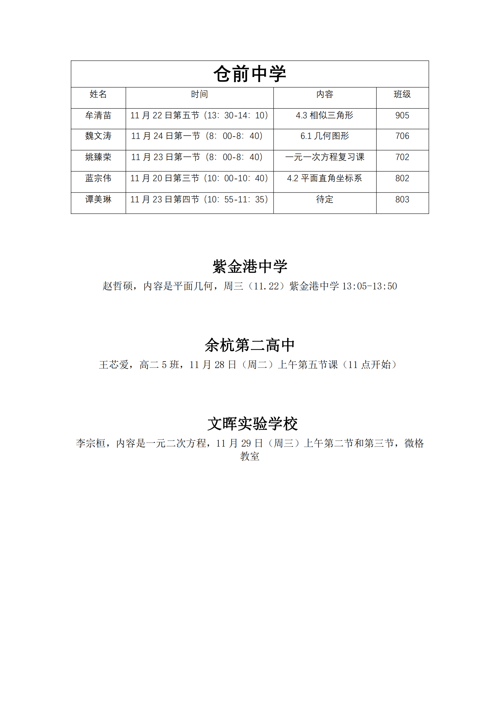 色漫 2023-2024学年第一学期仓前中学等4个点实习生公开课安排