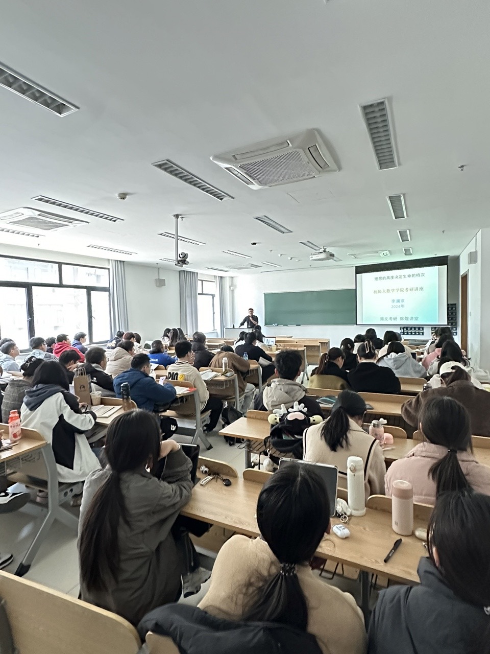 为更好地助力学生升学,打破考研中的信息差,数学学院特邀严紫霁专家开展考研全流程讲座严老师根据历年考研留学考公数据分析,帮助同学们打破信息壁垒选择适合自己的专业、院校。分析完各个院校的招生比例以及考研难度后,严老师详细地给同学们介绍3月备考如何启动复习以及考研全学科复习方法解析,根据同学们的自身情况选择最适合自己的专业。最后,根据杭师大院校专业数据进行全景解析,也参加讲座的同学们进行互动,针对同学们提出的问题一一解答,并为考研方向存在迷惑的同学提供参考建议。此次讲座不仅为准备考研的学生搭建了一个交流平台,更是帮助大三的同学更好地了解考研相关信息,明确考研的目标和方向,打破考研信息差!