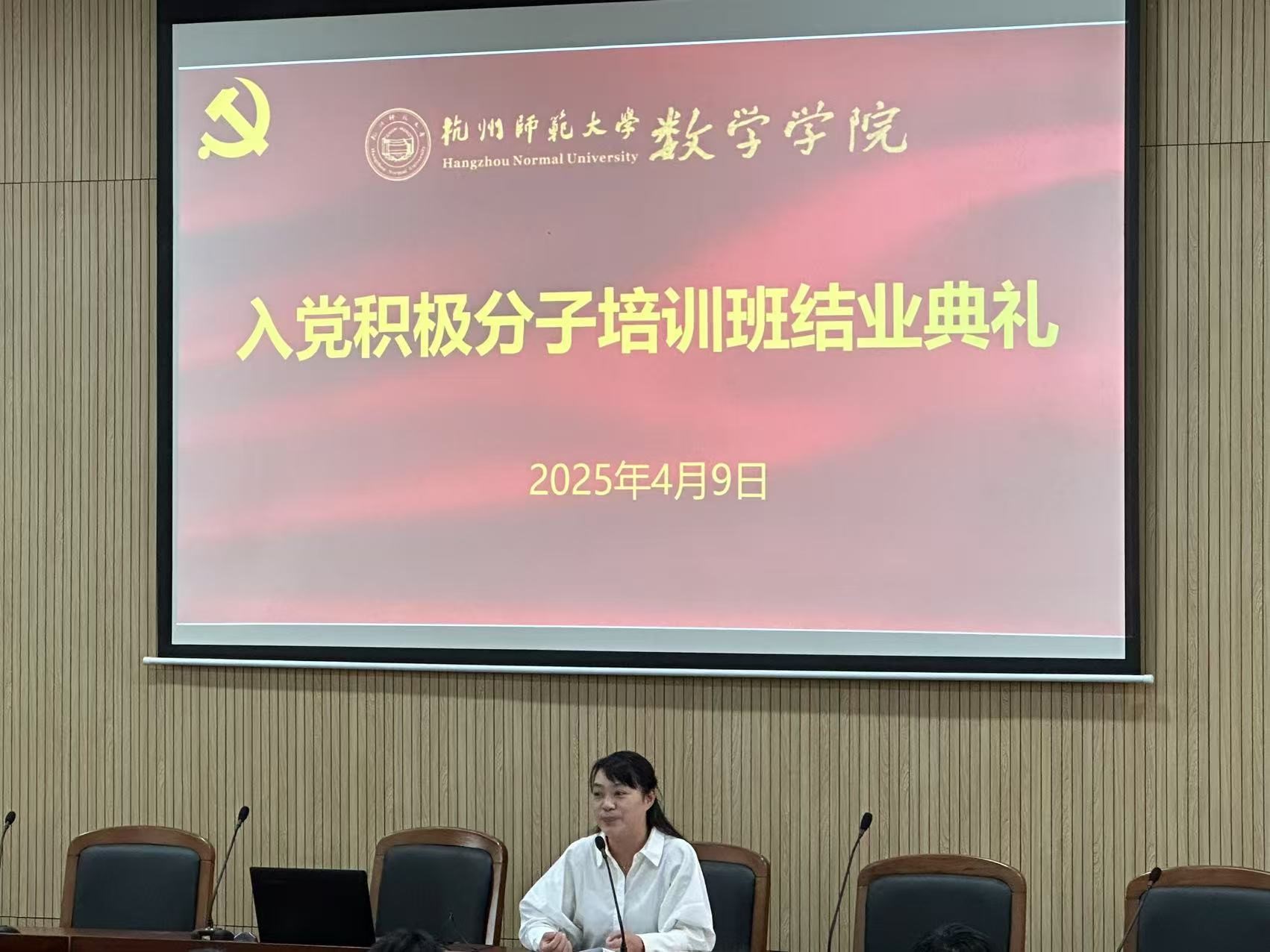 专题讲座结束后,本次入党积极分子培训班的结业典礼隆重举行。沈燕维老师以“结业典礼:新征程的起点”为中心,对本期入党积极分子培训情况进行了总结。她通过数据展示了学员们在理论学习、实践服务及思想汇报中的优异表现,并宣读了结业学员名单及优秀学员表彰决定。79位入党积极分子顺利结业,获得了结业证书;车欣珏、郑宝怡、郭禹希、罗婧煜、王昔今5位同学被评为优秀学员。沈燕维强调,培训结业并非终点,而是迈向党组织更严格考验的起点。她以吴文俊、陈建功等数学先辈为例,勉励学员将个人成长融入党和国家的事业中,始终保持对党的忠诚与热爱。
