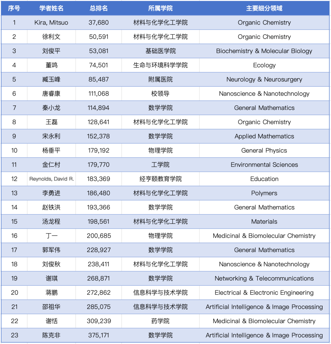 色漫 23位学者入选全球前2%“终身科学影响力榜单”