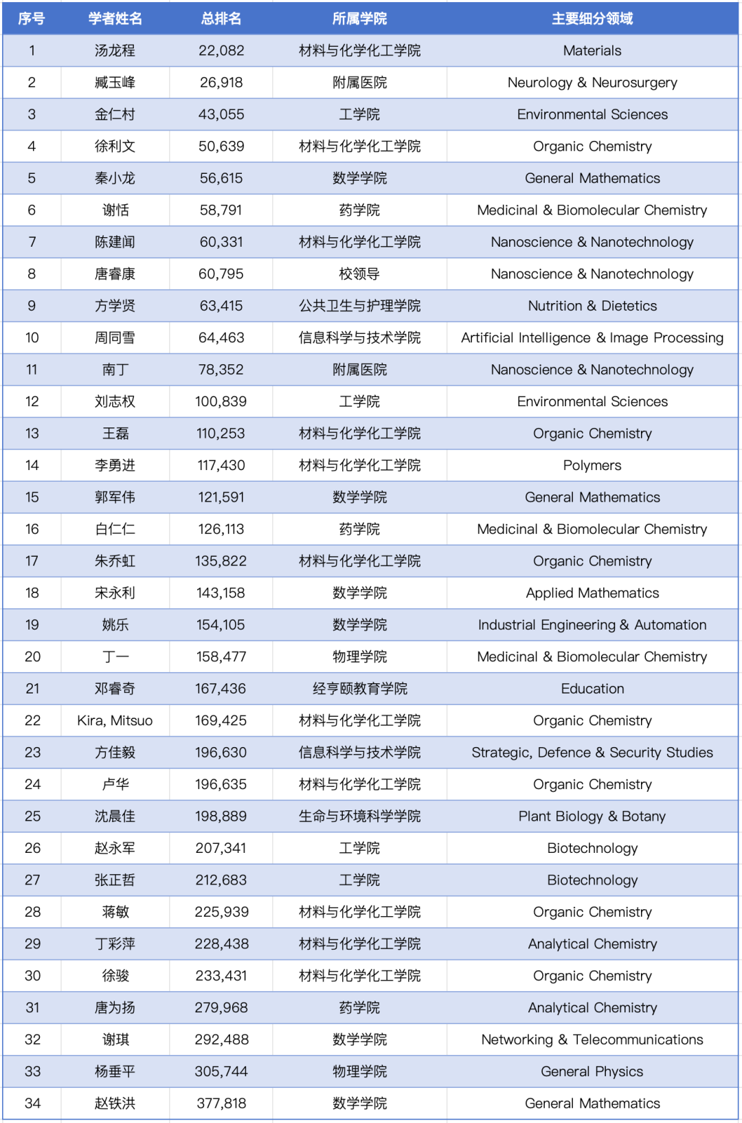 色漫 34位学者入选全球前2%“年度科学影响力榜单”