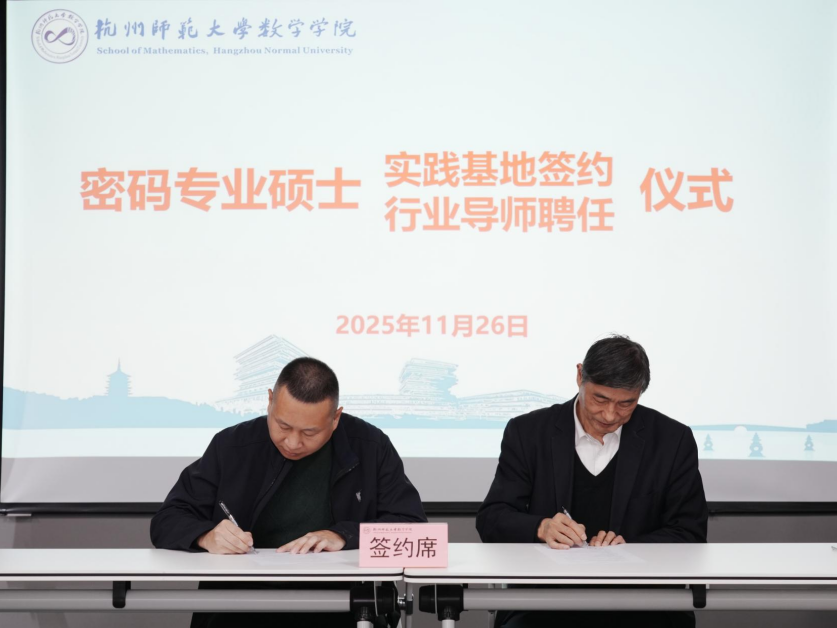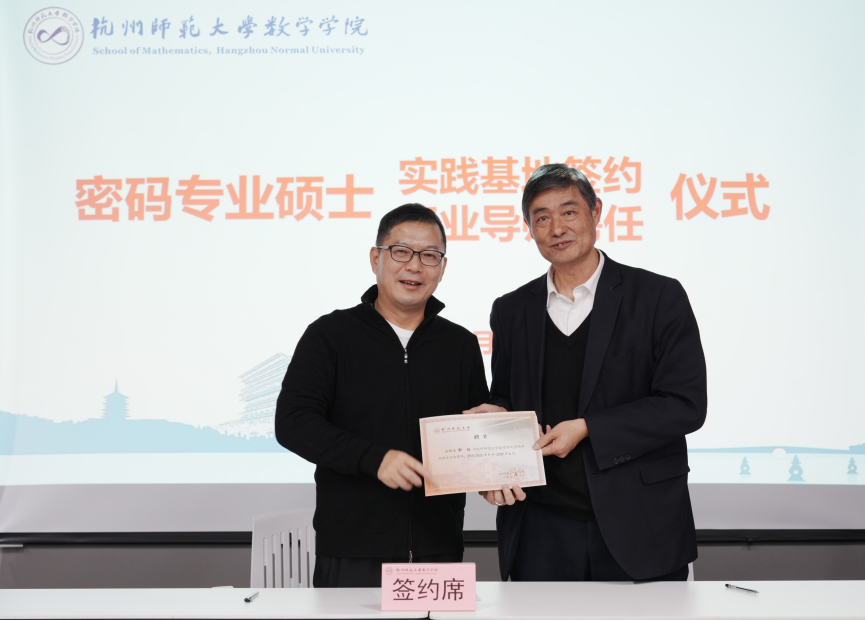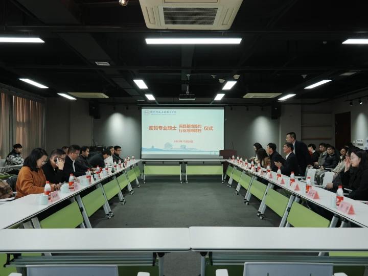 11月26日,为进一步夯实色漫 密码专业硕士点建设基石,深度推进产教融合发展,学院隆重举行“密码专硕实践基地签约与行业导师聘任仪式”。此次活动不仅标志着学院在密码专业人才培养模式上迈出了创新步伐,更为学院与行业间的紧密合作搭建了坚实桥梁。学院党委书记徐金芳、副院长何济位出席,党委副书记李庆龙主持仪式,密码团队教师及密码专硕研究生等共同参加活动。