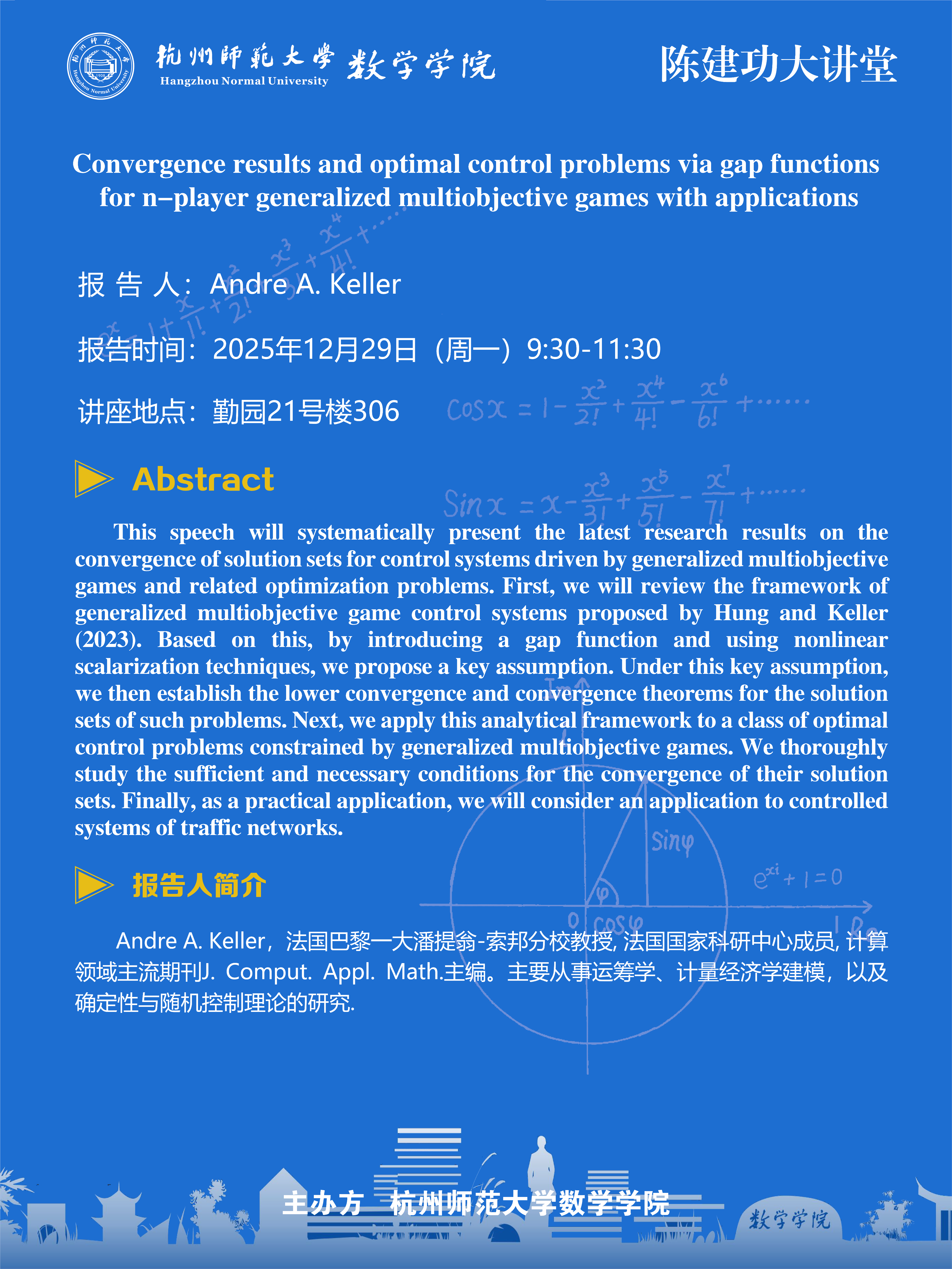 陈建功大讲堂(2025-163):Convergence results and optimal control problems via gap functions for n-player generalized multiobjective games with applications