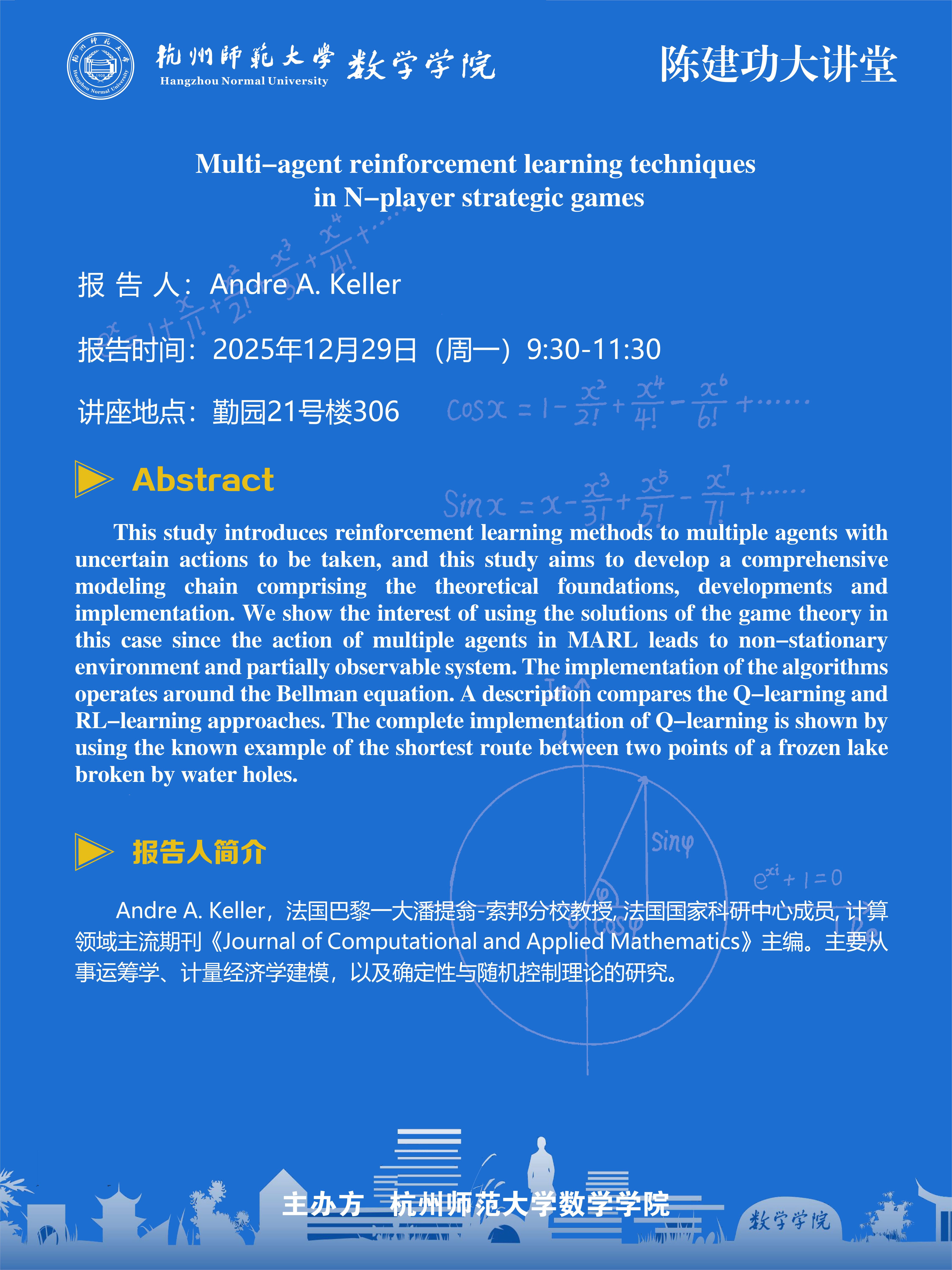 陈建功大讲堂(2025-165):Multi-agent reinforcement learning techniques in N-player strategic games