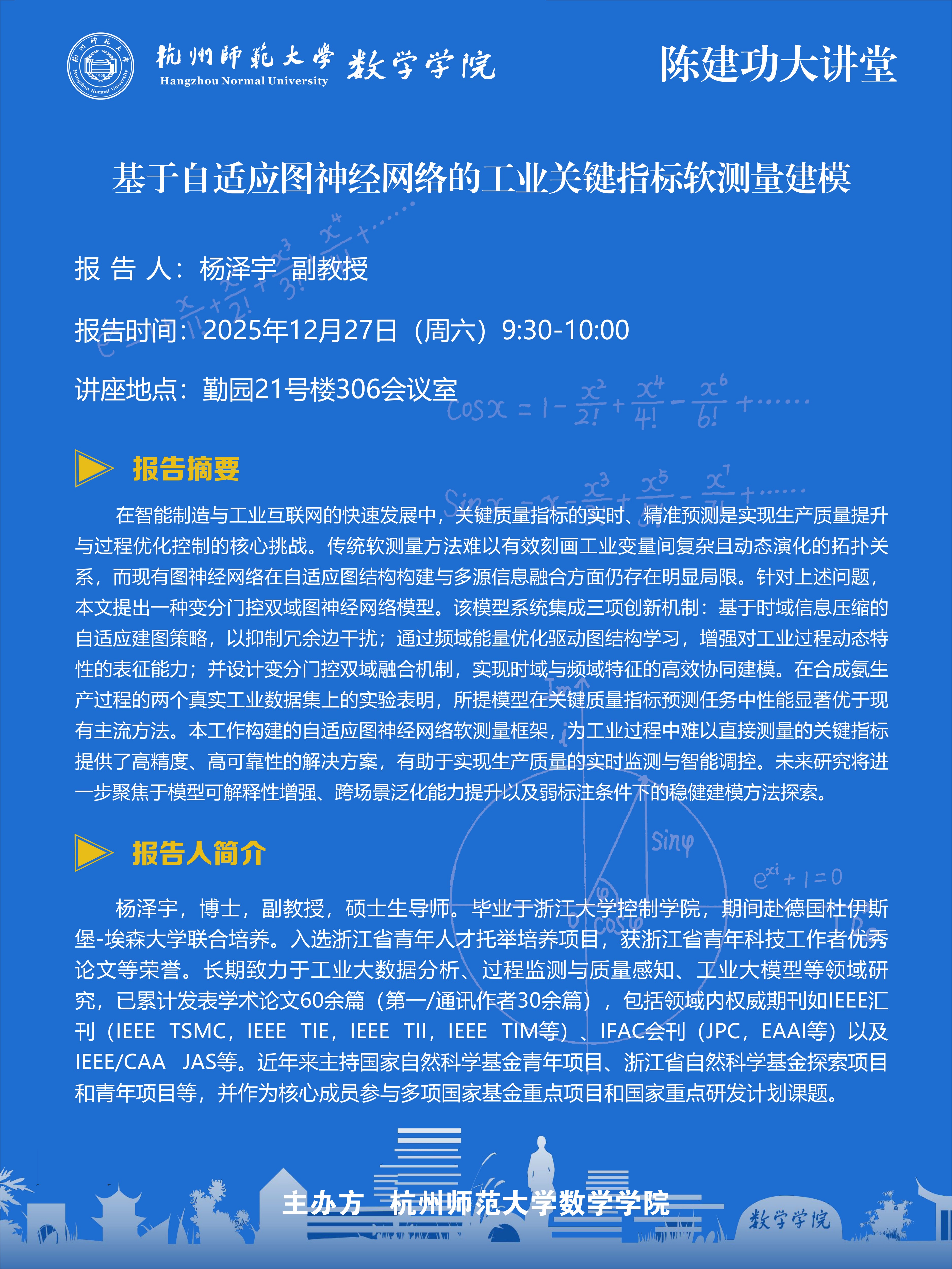 陈建功大讲堂(2025-167):基于自适应图神经网络的工业关键指标软测量建模
